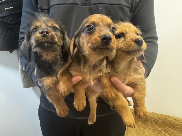 Here we have 6 lovely pups looking for their forever homes. 4 boys 2 girls, 8 weeks old, microchipped 1st vaccinations (2nd free) flea and wormed treated and ready to leave. Mum is smooth hair chocolate dapple and dad is long hair red dachsund.
